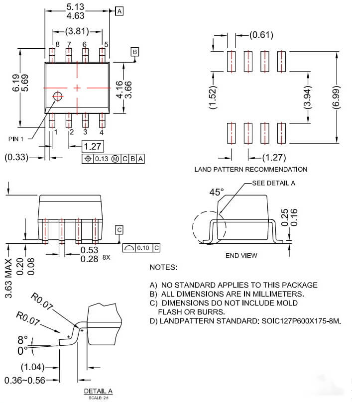 Рис.№2. Внешний вид и габариты оптрона HCPL-0611