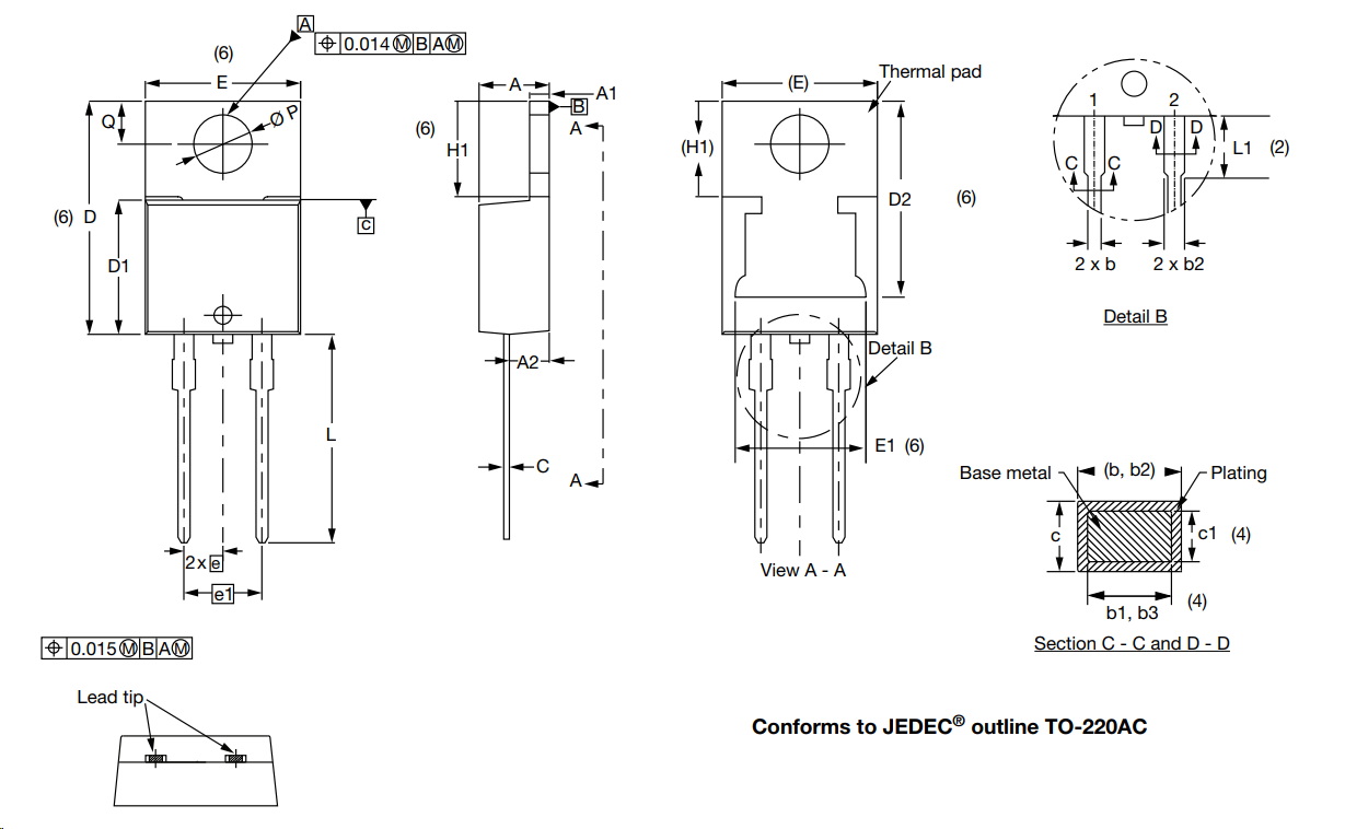 Рис.№2. Внешний вид и габариты диода Шоттки VS-15TQ060